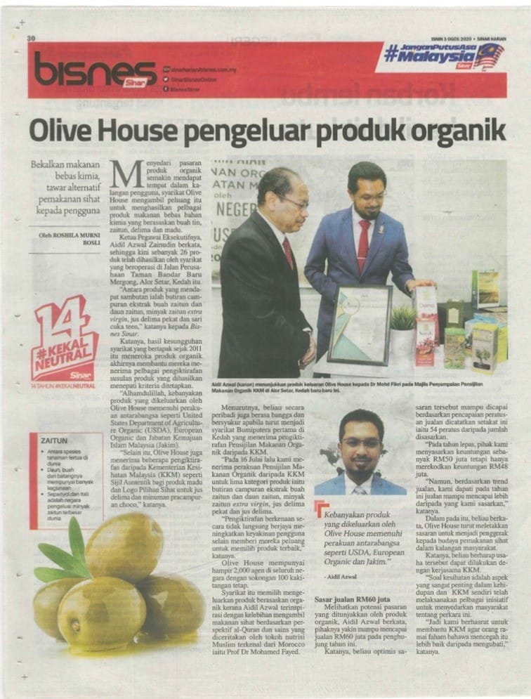 Olive House menerima pengiktirafan Pensijilan Makanan Organik