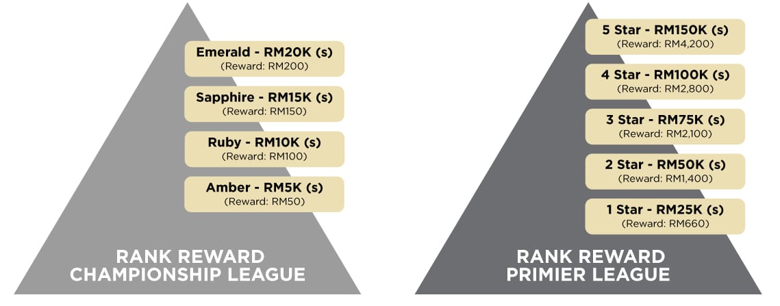 Kelayakan adalah melalui data jualan yang direkodkan di dalam sistem Acore. Mengikut kategori pencapaian seperti gambaran di bawah: